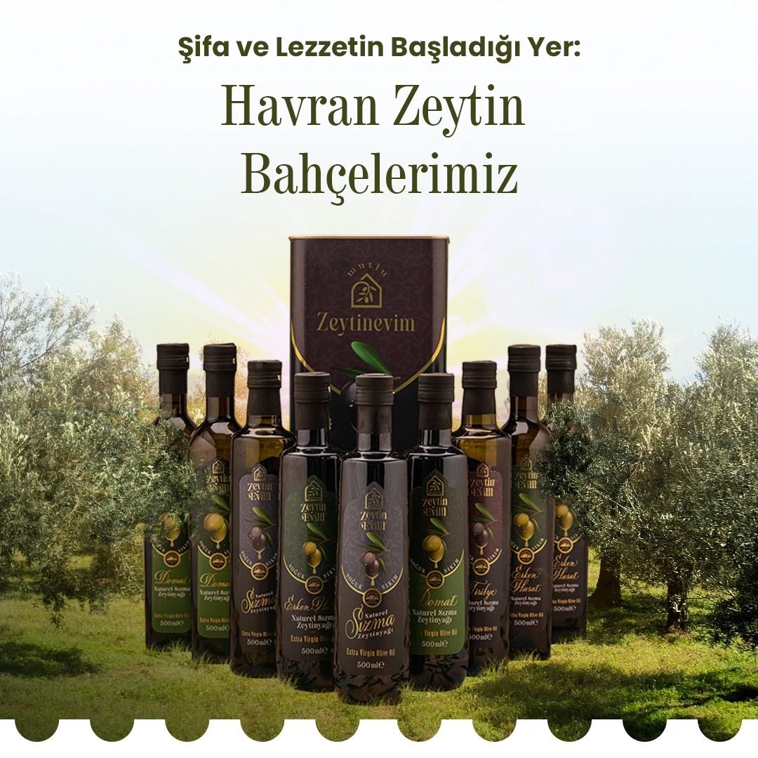Lezzetini Havran bahçelerinin en kaliteli tirilye zeytinlerinden alan natürel sızma zeytinyağımız, tazeliği ve saf aromasıyla sofralarda lezzet ayrıcalığı sunar.