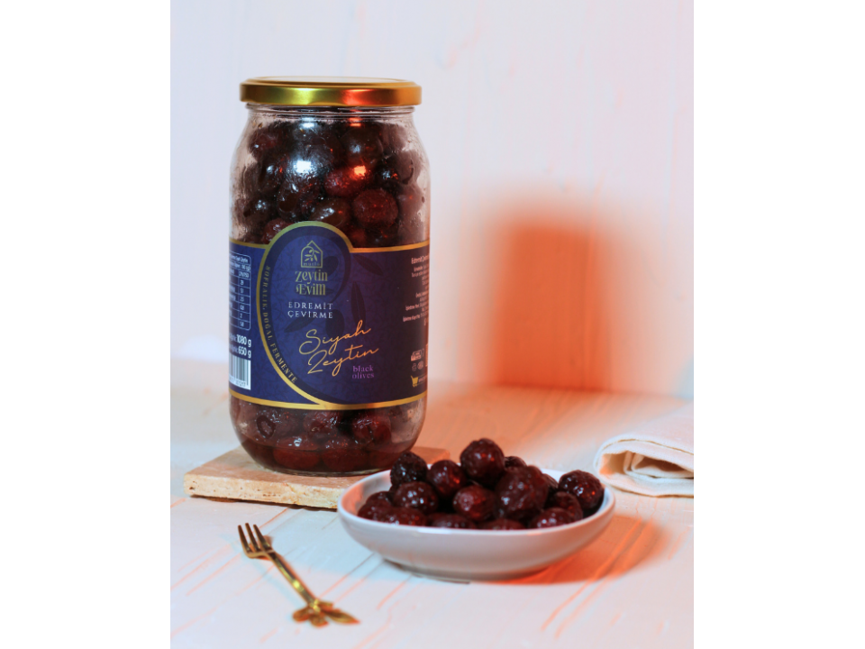 Edremit Çevirme Siyah Zeytin 650 Gr Kavanoz