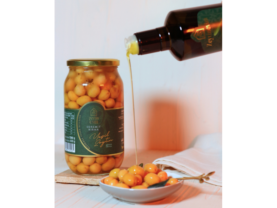 Edremit Kırma Yeşil Zeytin 650 Gr Kavanoz