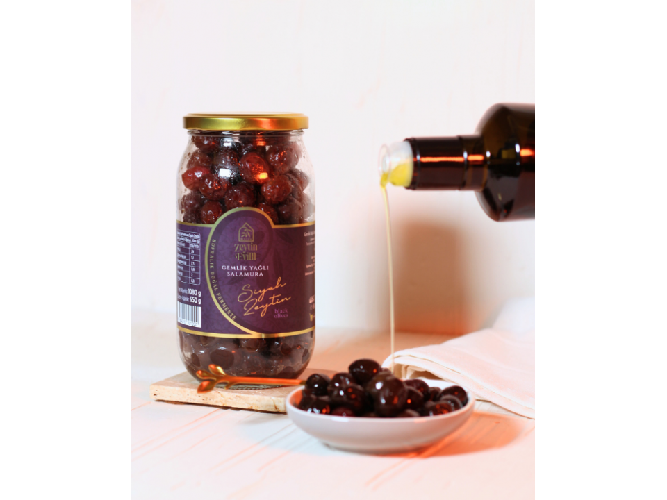 Gemlik Yağlı Salamura Siyah Zeytin 650 Gr Kavanoz